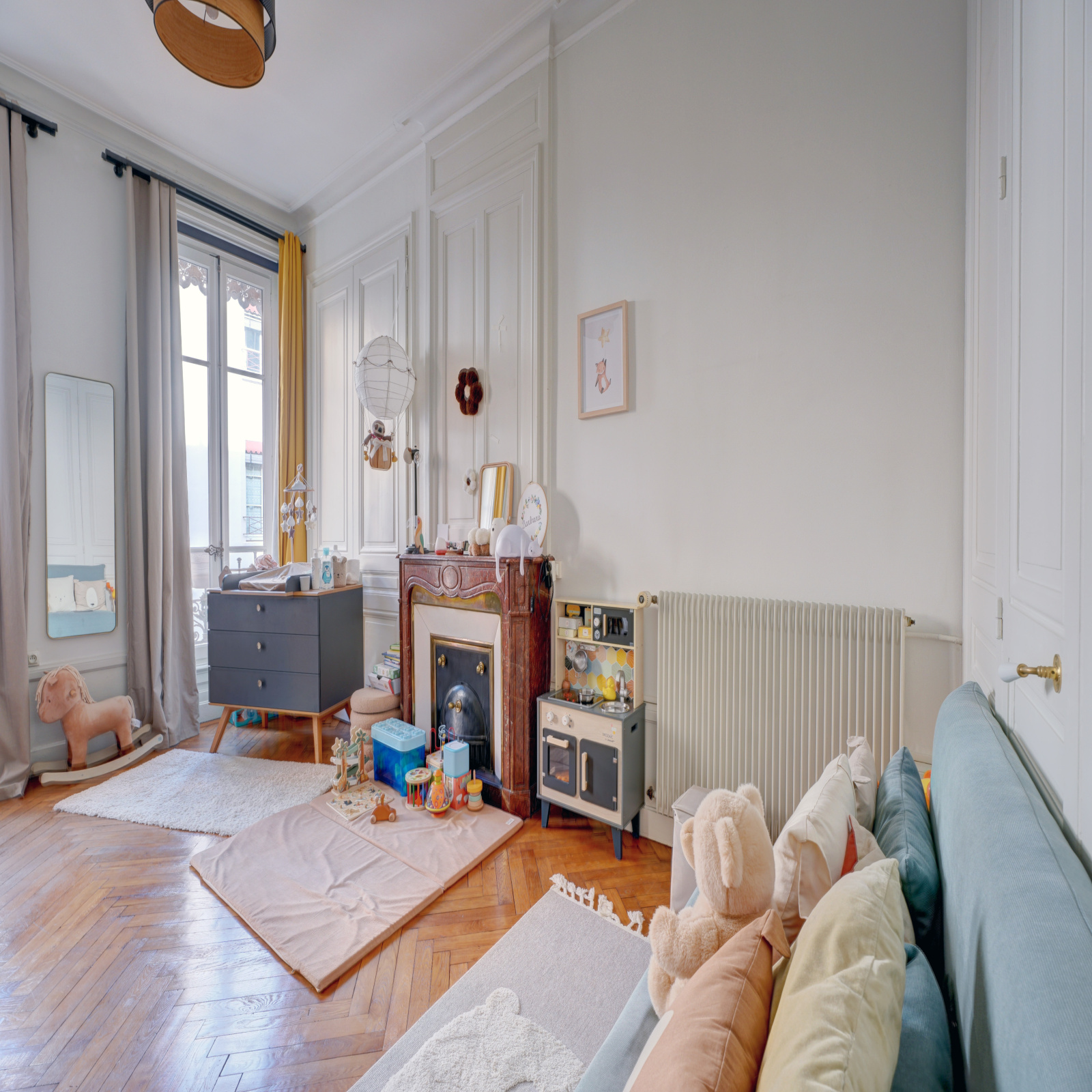 Cet appartement traversant, entièrement rénové avec des matériaux de qualité, est un lieu de vie où chaque détail préservé de l'histoire apporte de l'élégance ( parquets pointe de Hongrie, cheminées décoratives dans chaque pièce, fenètres toute hauteur, moulures... )