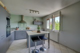 À l'étage : Un espace de vie lumineux intégrant une cuisine moderne entièrement aménagée et équipée, trois chambres confortables et une salle de bains avec toilettes.