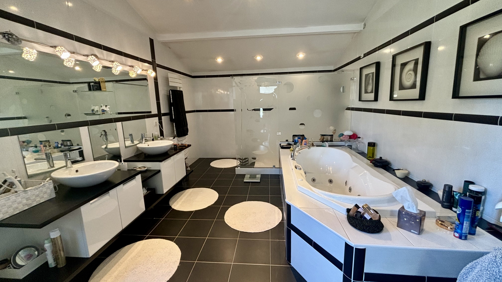 Implantée sur une parcelle de 1243 m2 de terrain entièrement cloturé, végétalisé et agrémenté d'une piscine chauffée de 10x5, cette propriété déploie une surface habitable de 331 m2, composée comme suit :